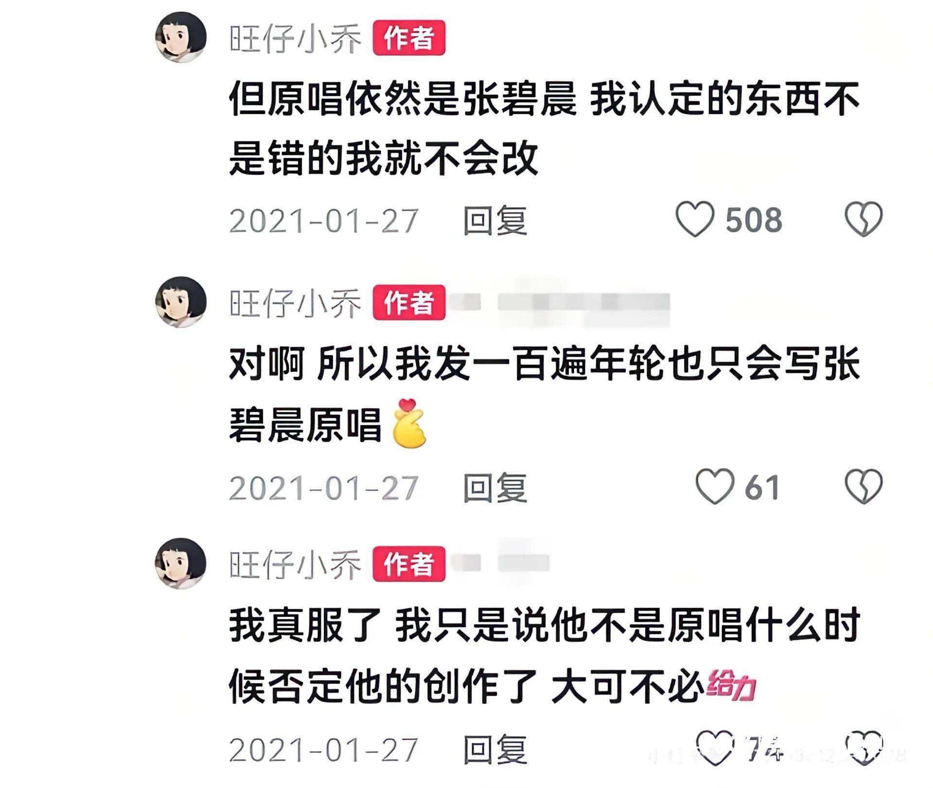 南都N视频此前报道(),该事件源于近日,拥有超2000万粉丝的网红“旺仔小乔”在回复网友评论时,称《年轮》由汪苏泷创作,但原唱是张碧晨,“我发一百遍《年轮》也只会写张碧晨原唱”。7月22日,“旺仔小乔说《年轮》原唱不是汪苏泷”的话题登上热搜,引发双方粉丝对谁是《年轮》原唱者的争议。
