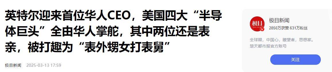 而执掌这些公司的恰恰就是黄仁勋、苏姿丰和另一位华裔领袖陈福阳,这种情况就很让人心痛了,那些从我们血脉中走出去的顶尖人才,如却今成了扼住我们咽喉的“最锋利的手”,但是这不是背叛,而是规则。