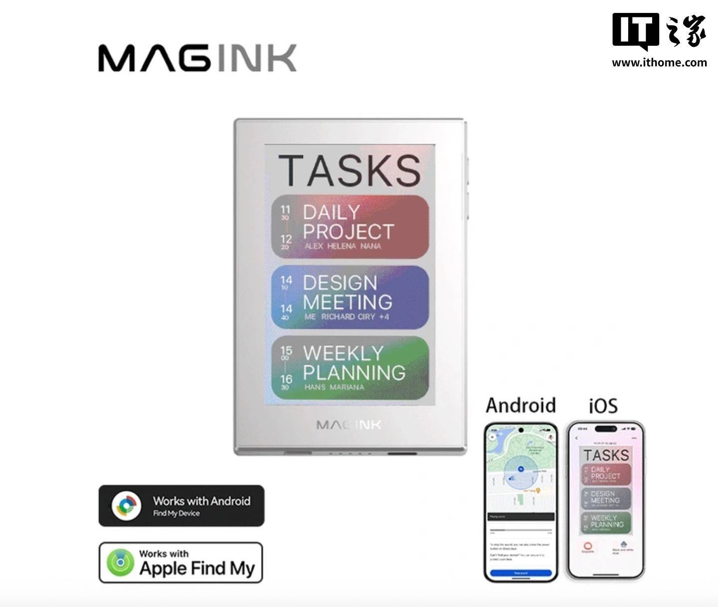 IT之家 7 月 27 日消息,制造商 Tmobi 现已推出一款名为 MagInk 的移动电源,这款移动电源最大的特色就是其配备一块彩色墨水屏,同时支持苹果“查找”网络,在 Kickstarter 上众筹价为 49 美元(IT之家注:现汇率约合 351.1 元人民币)起。