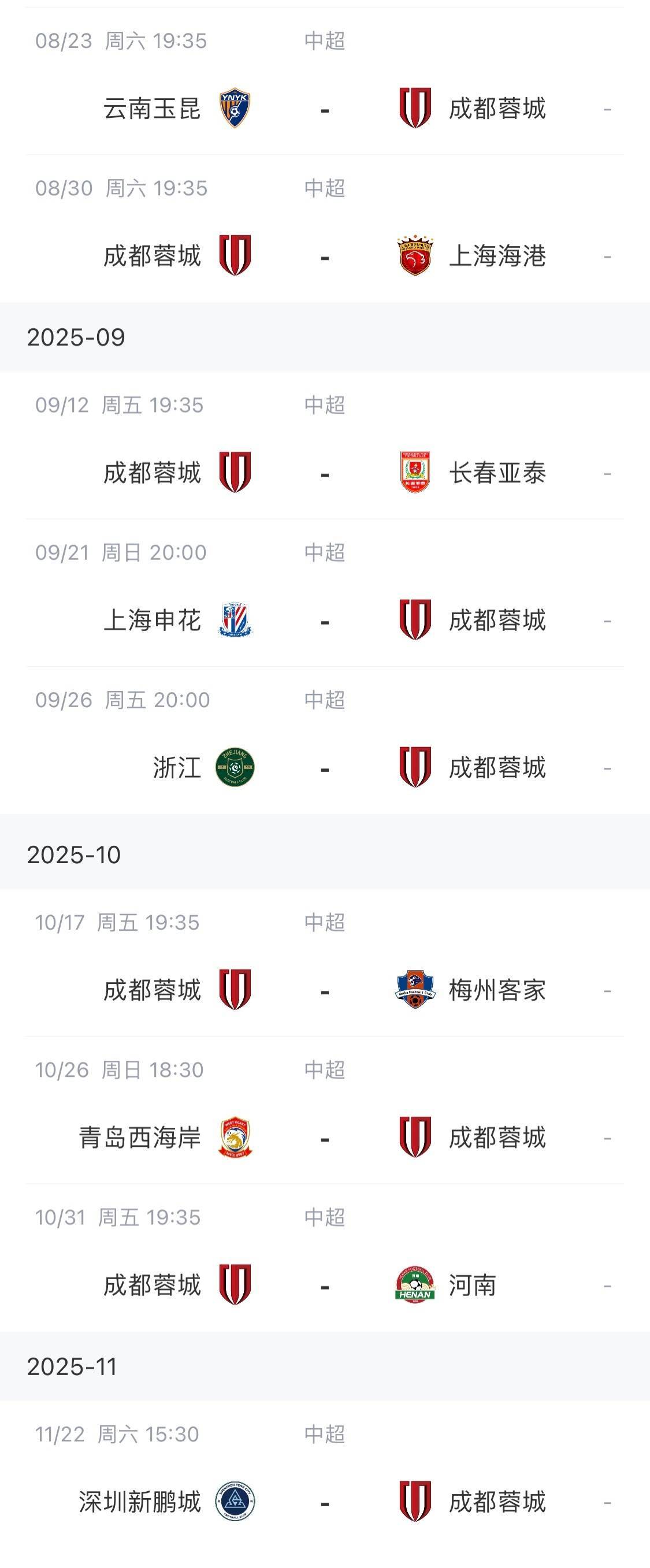在中超还剩9轮的情况下,上海海港还需客战成都蓉城、北京国安、山东泰山和大连英博。