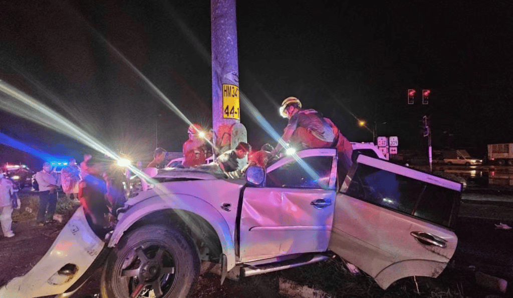 据报道,当地时间9月7日凌晨0时45分左右,在泰国大城府的一个交叉路口,一辆白色SUV撞上中央隔离带后,又撞上了附近的电线杆。事故导致车辆前部严重受损,驾驶该车的42岁男司机被困在车内。随后,救援队赶到现场,使用切割设备对被困在车内的司机实施救援。