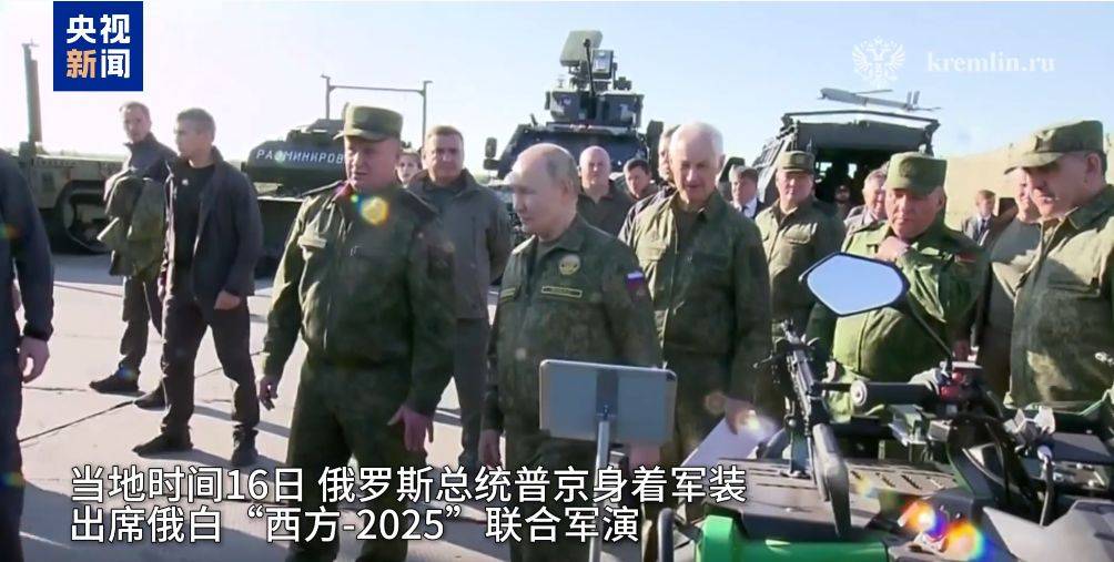 据央视新闻,当地时间9月16日,克里姆林宫新闻局发布消息称,俄罗斯总统普京身着军装出席了俄白“西方-2025”联合军演。