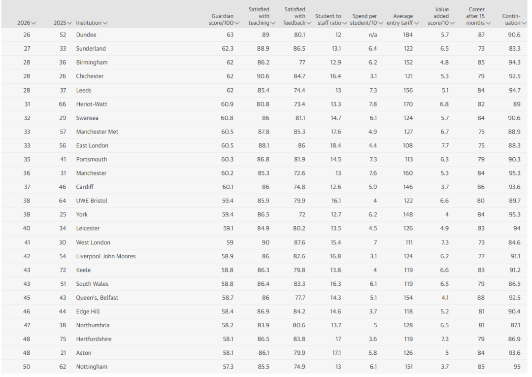 英国《卫报》(The Guardian)2026年英国大学排名也已经发布!这可是英国三大权威大学排名之一,不像 QS、THE 等国际排名侧重科研声誉,卫报排名重点关注学生就读体验和就业情况,堪称 “真正给学生看的排名”,参考价值超高!接下来咱们一起看看这次排名有哪些亮点吧!