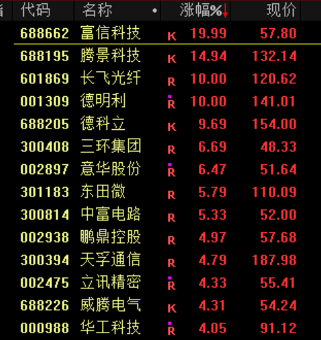CPO概念股继续活跃,天通股份、长飞光纤等涨停。