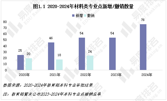 材料类新增专业点数量逐年增加,新增数量与撤销数量的差值逐年增加,增速加快,五年间新能源材料与器件新增多达90个专业点。随着新能源行业爆发式增长和半导体的加持,社会对材料类人才的需求也在快速增长。