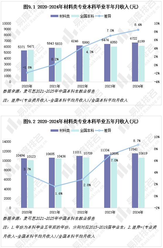 数据显示,该指标于2024年已与全国本科平均水平基本持平,预计到2025年将实现反超,反映出材料类专业在就业市场中的竞争力和吸引力正在不断增强。