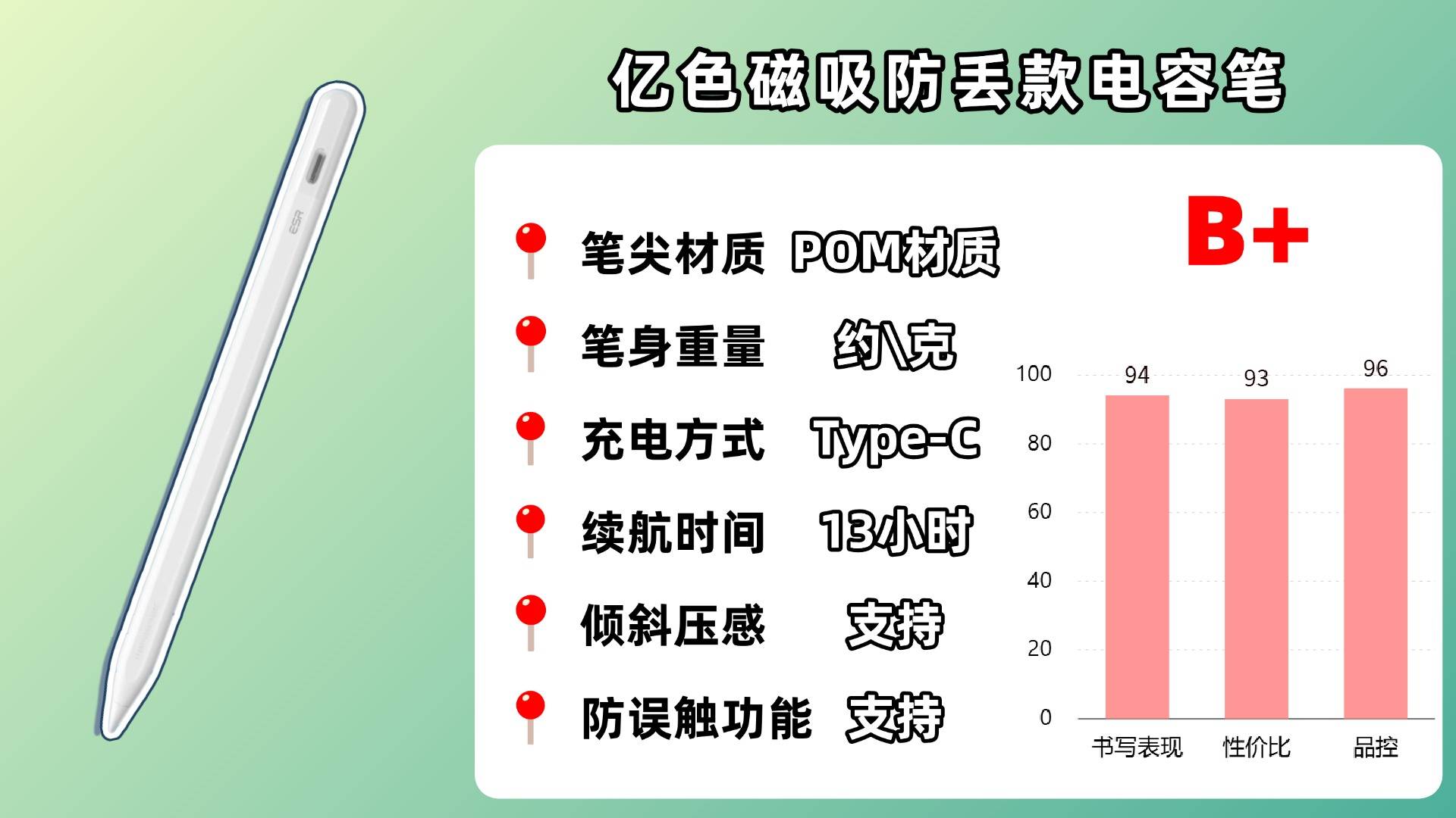 iPad电容笔推荐2025明星单品九:亿-色磁吸防丢款电容笔