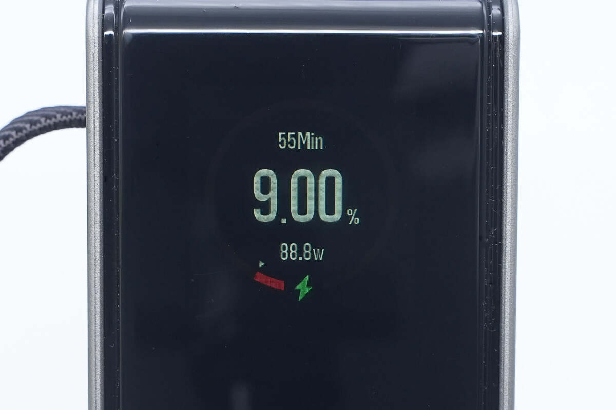 还能显示移动电源剩余电量、自充电功率以及预计充满所需时长,自充电设计绿色闪电标识进行提示。