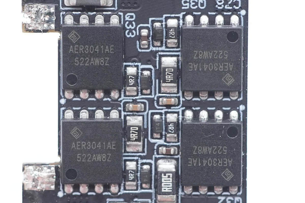 搭配的四颗同步升降压开关管也是采用禾纳半导体AER3041AE。