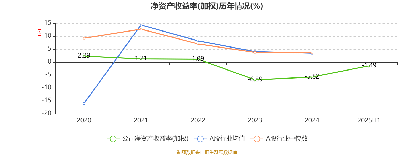 2025年上半年,公司平均净资产收益率为-1.49%,较上年同期上升0.59个百分点。