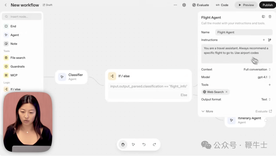 如果说SDK是入口,那 AgentKit 就是引擎。Christina Huang现场仅用8分钟就搭建出一个完整AI Agent,包括界面、逻辑、部署、测试,全程零卡顿,还剩49秒。