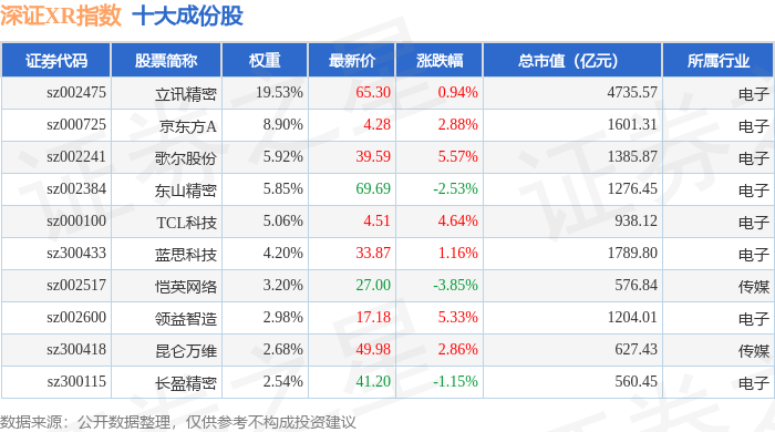 深证XR(970046)指数十大成份股详情如下: