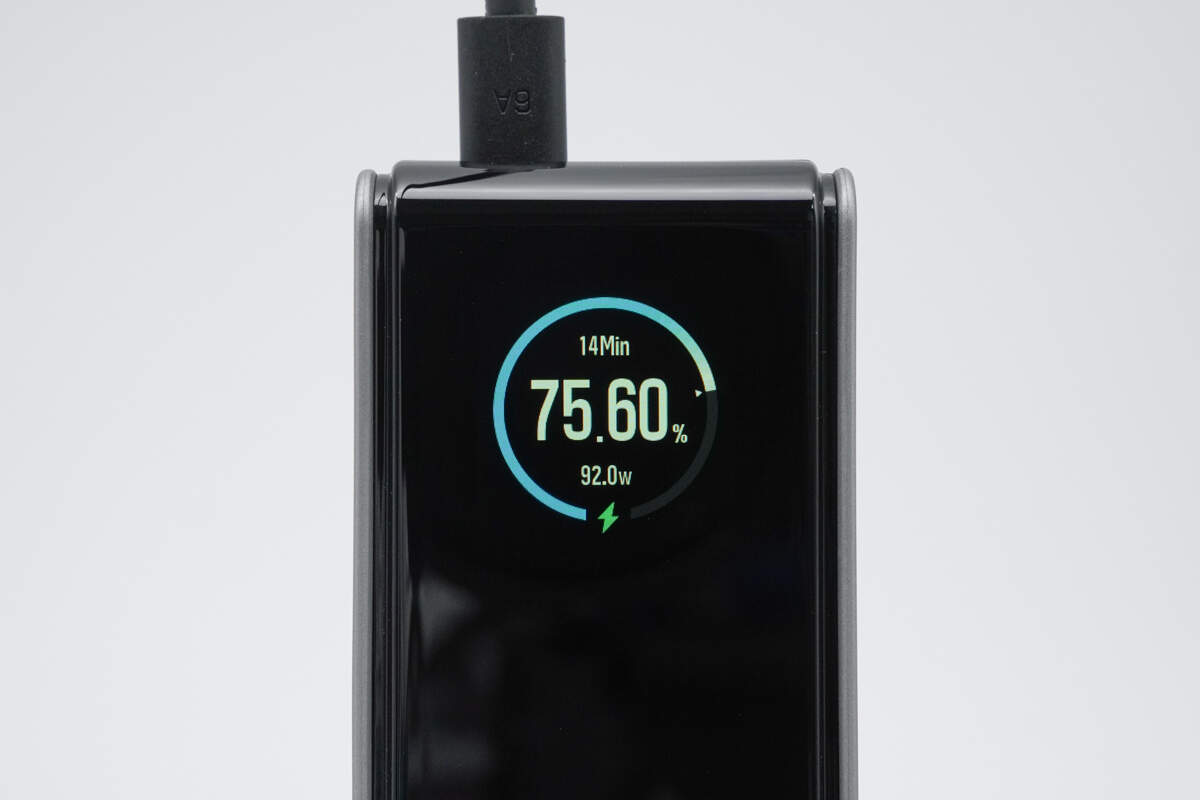 此外充电宝也搭载16位色深TFT彩色屏显以及25000mAh电池组,在产品的实用可玩性以及续航方面都没有缩水,满足笔电、平板、手机等设备快充需求。下面我们就一起来看看这款移动电源的具体设计。