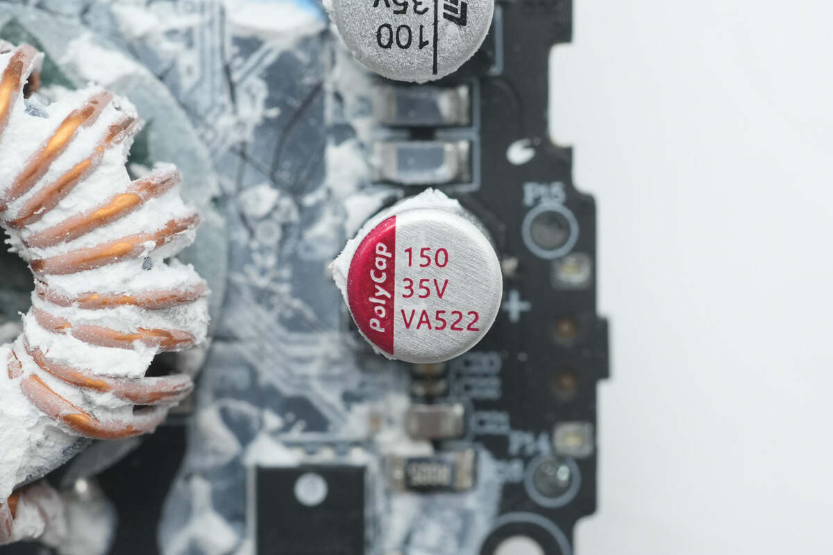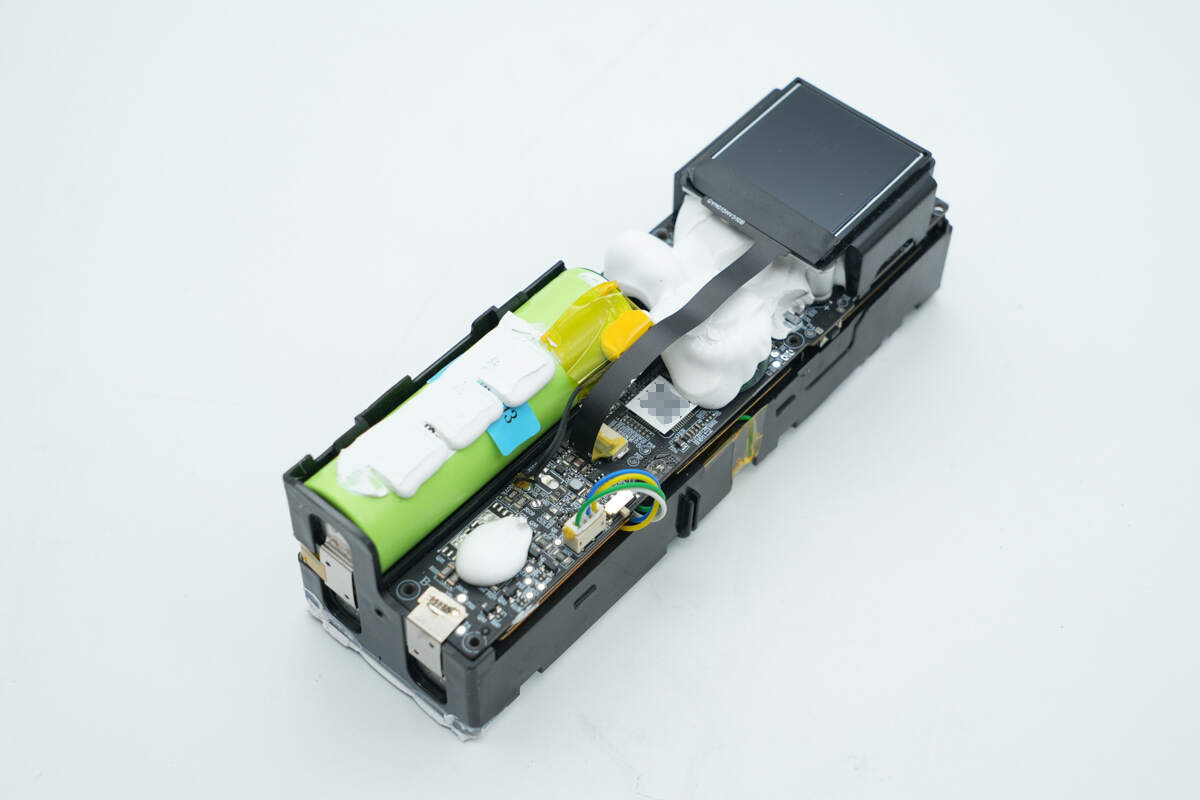 内部PCB板以及电芯上大量填充白胶进行加固保护。