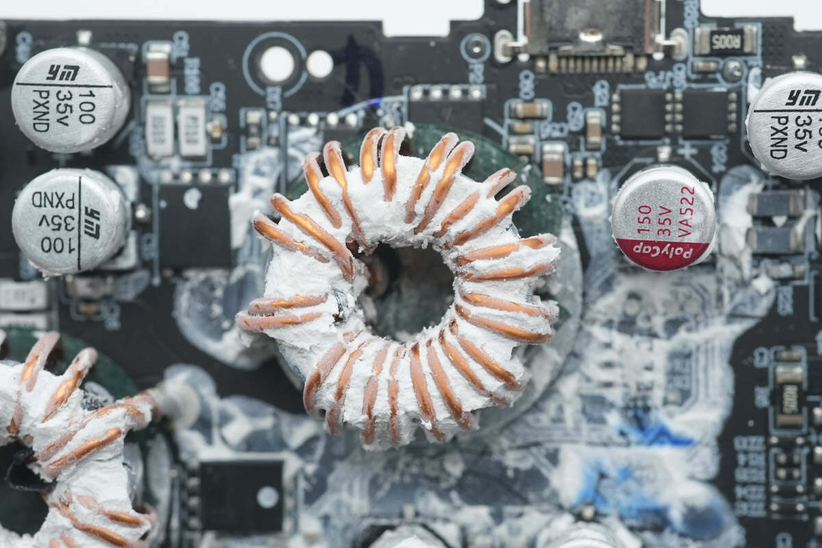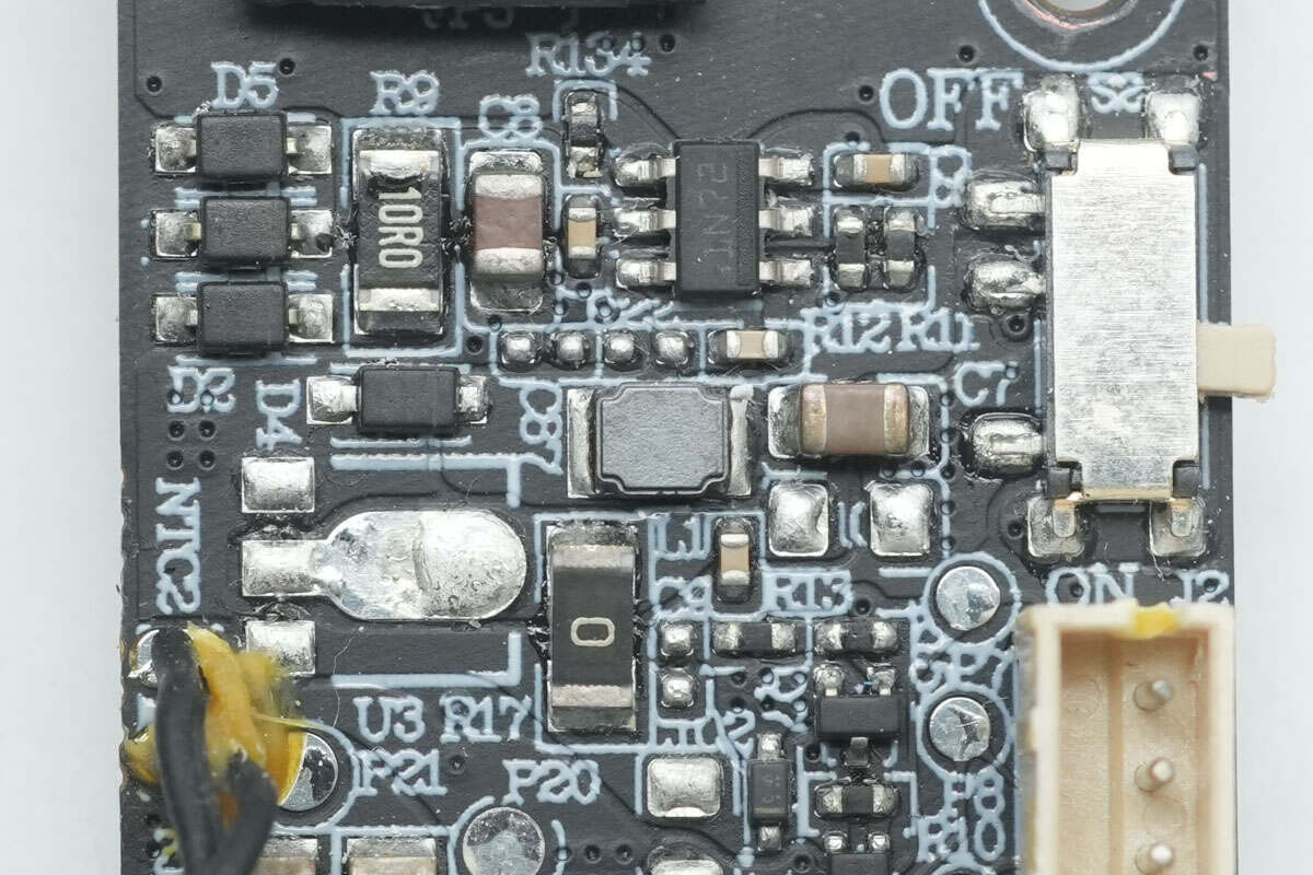 搭配的升降压电感下方也设有青稞绝缘纸。