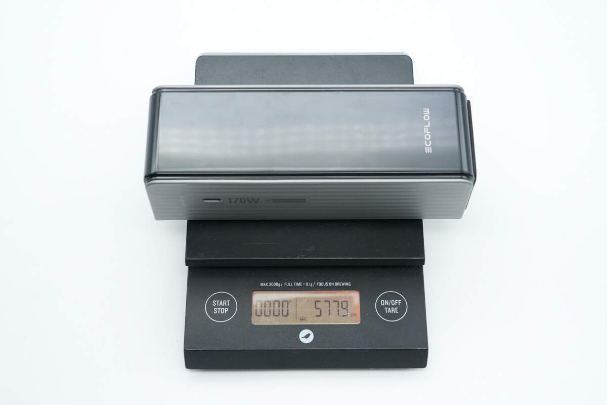 另外测得充电宝重量约为578g。