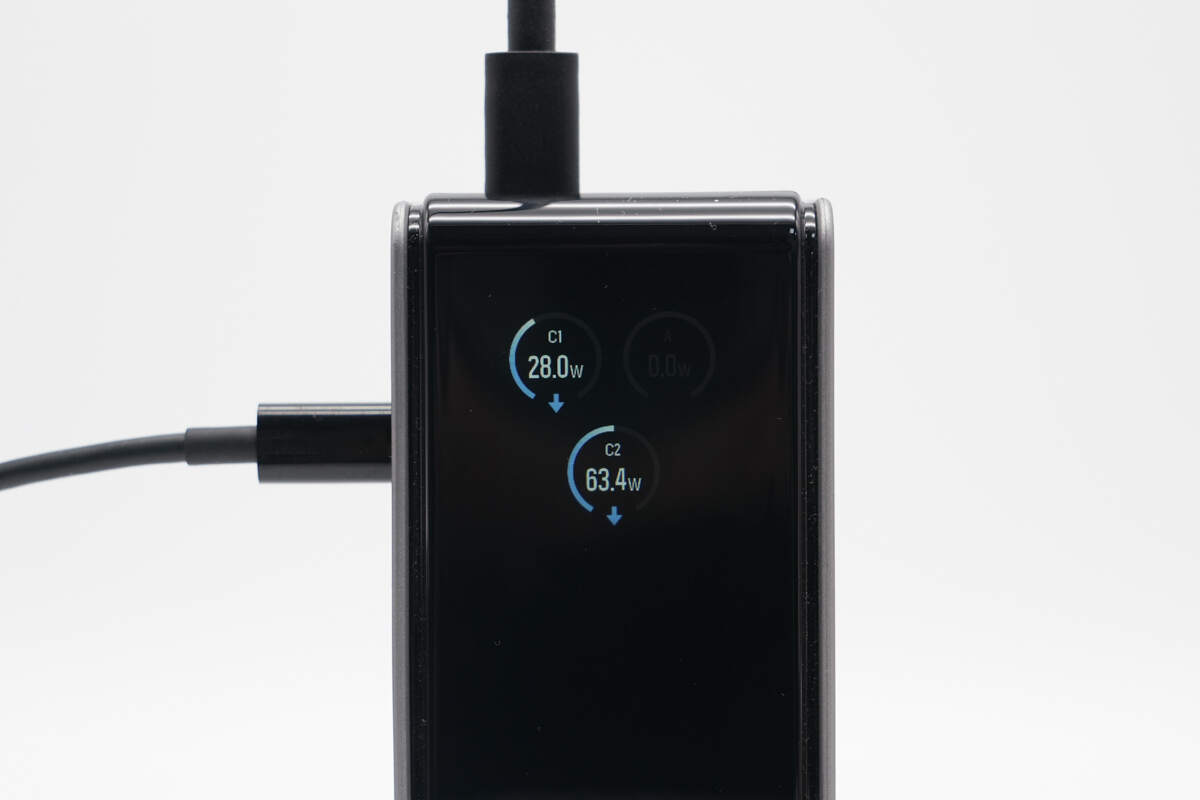 最后测得UFCS融合快充报文也相同,两个USB-C口单口输出性能一样,支持功率盲插。