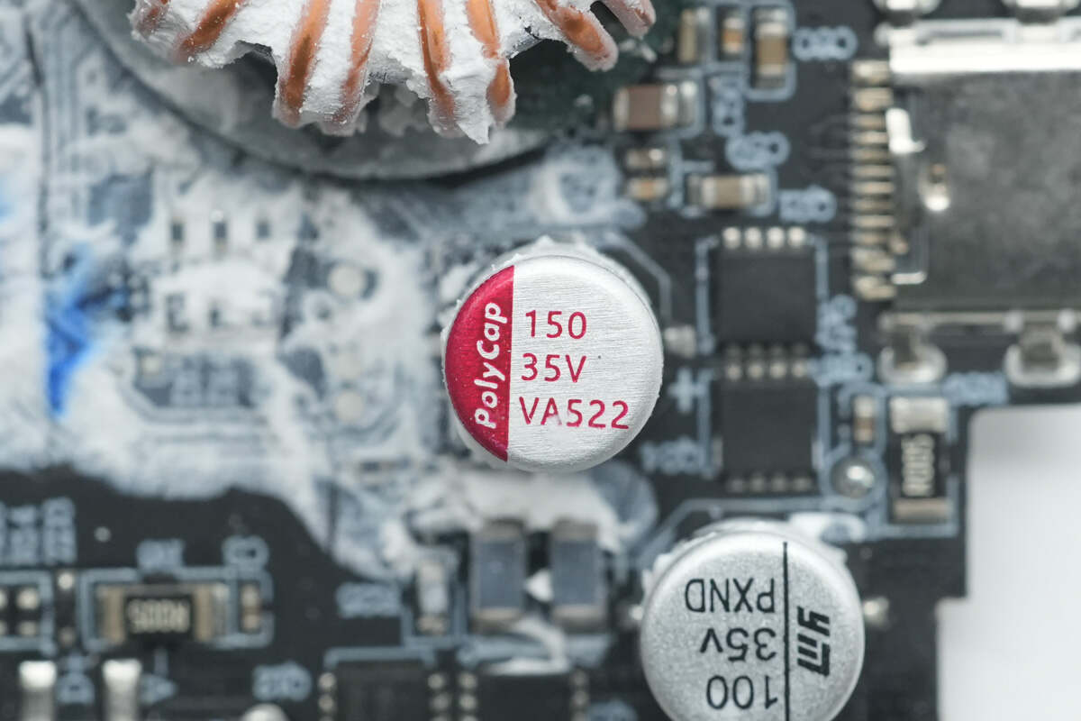 滤波固态电容来自柏瑞凯,规格为35V150μF。