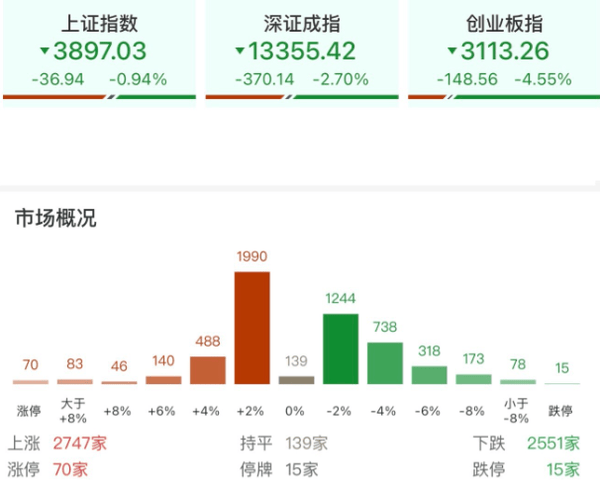 【CNMO科技消息】10月10日,A股市场全天震荡下行,三大指数集体收跌。截至收盘,上证指数下跌0.94%,深证成指下跌2.70%,创业板指大幅下挫4.55%,北证50指数亦下跌1.24%。沪深两市合计成交额约为2.52万亿元,较前一个交易日缩量约1376亿元,市场交投热度有所回落,全市场超2500只个股下跌,呈现普跌格局。