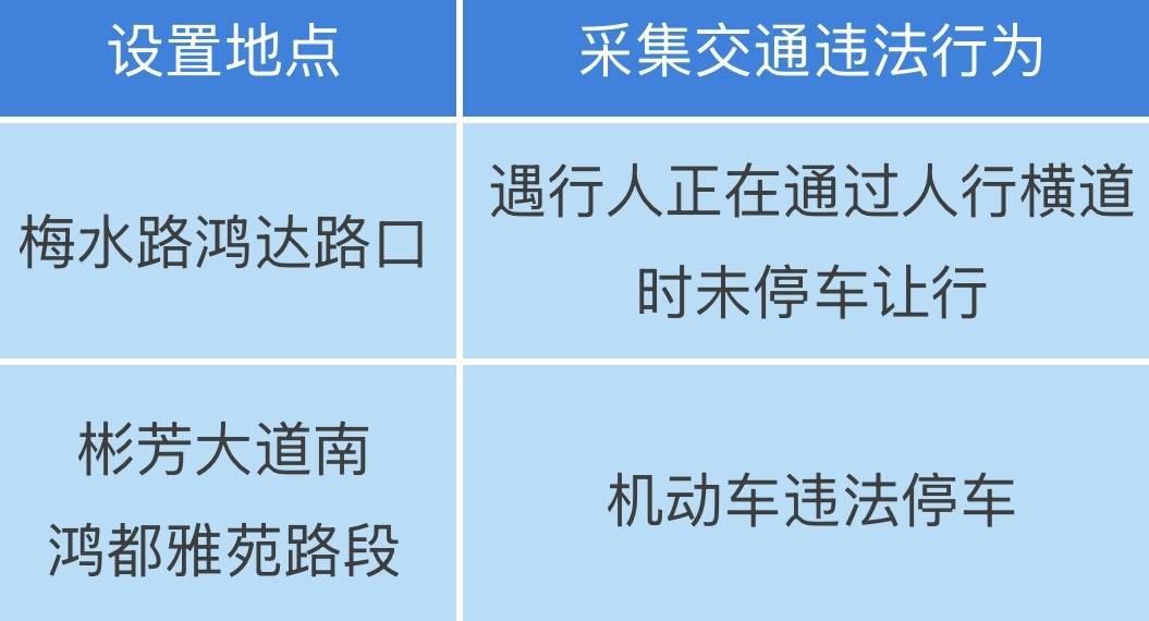 记者获悉,为让广大市民日常出行更安全,道路通行更顺畅,梅江区2套全新电子监控设备即将启用,地点如下: