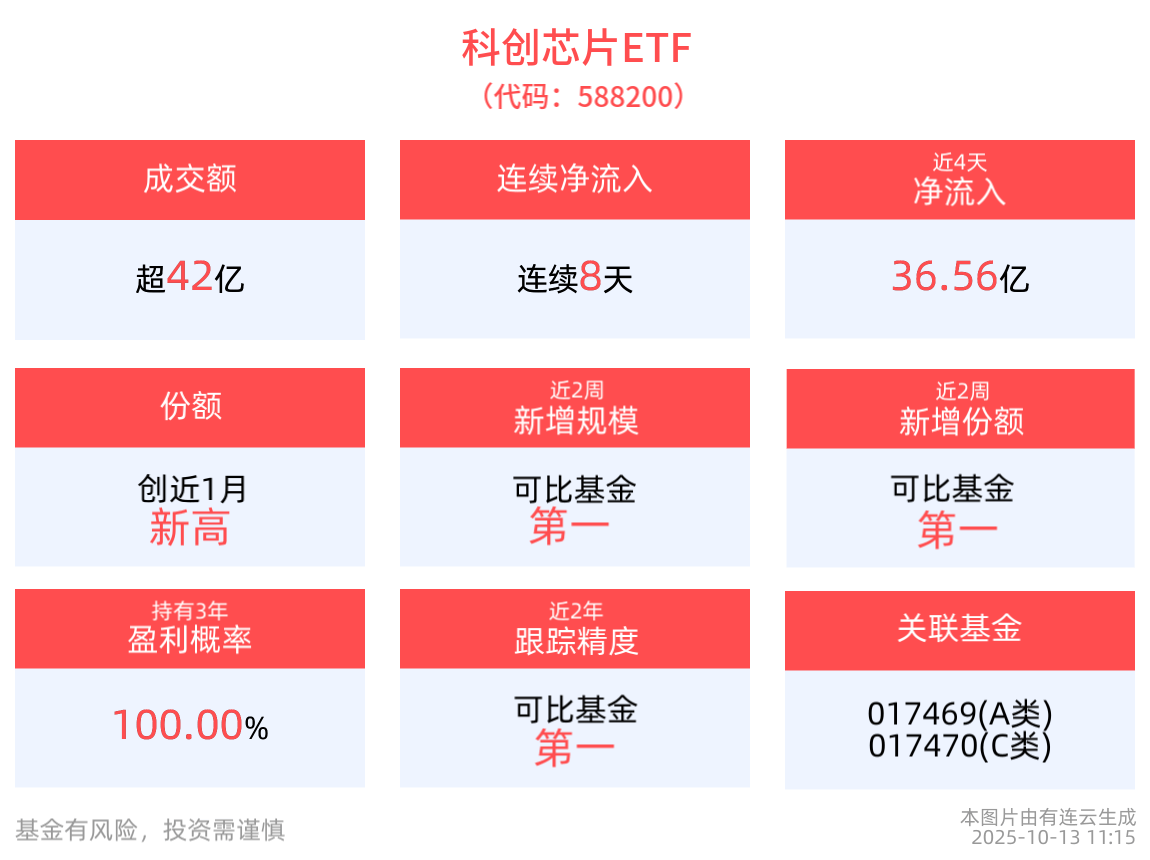 国产芯片加速升级量产,科创芯片ETF(588200)连续8天净流入,累计“吸金”超64亿元!