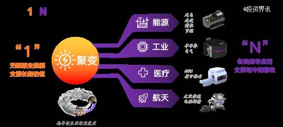 岩超聚能在短中期通过将核心的超导磁体技术降维应用在能源、工业、医疗、航天等领域(“N”)率先开展商业化,其中: