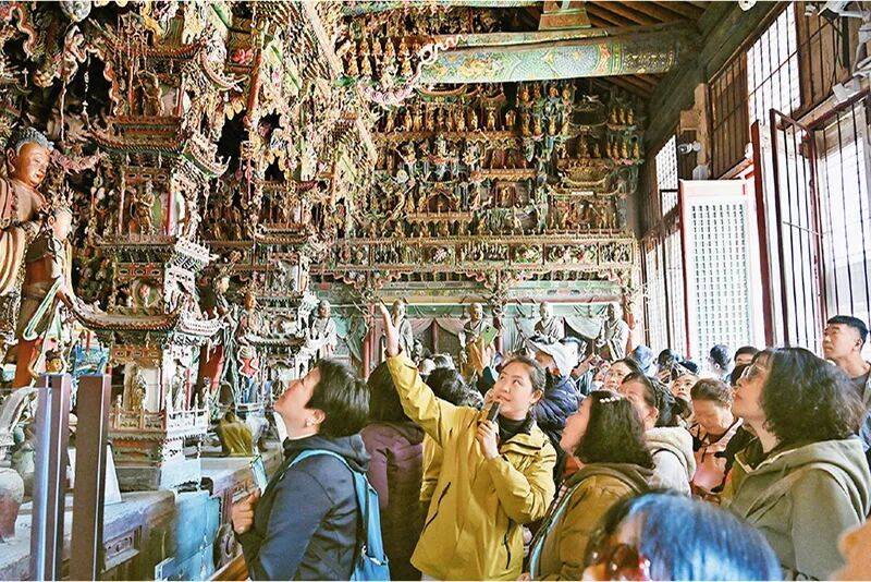 近年来,山西坚持以文塑旅、以旅彰文,把文旅产业作为支柱产业、民生产业、幸福产业来抓,推出“跟着悟空游山西”等特色活动,带动文旅市场持续升温。图为2025年3月21日拍摄的《黑神话:悟空》取景地隰县小西天景区,精美的悬塑让游客们目不暇接。 山西日报社记者 申晋光/摄