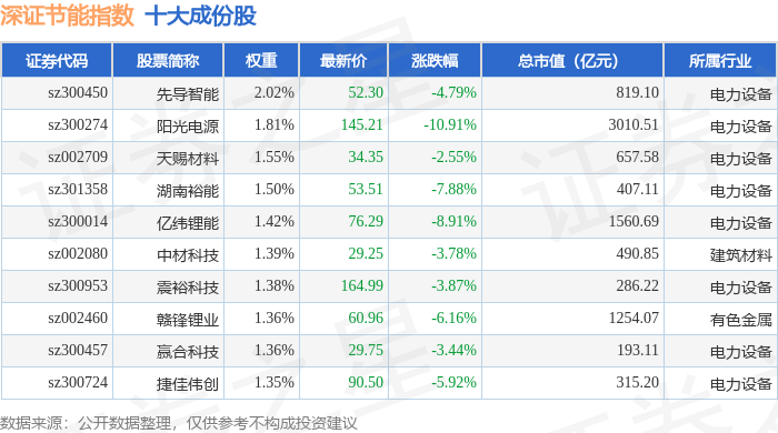 证券之星消息,10月17日,深证节能(399695)指数报收于2721.59点,跌4.39%,成交1309.01亿元,换手率2.39%。当日该指数成份股中,上涨的有2家,万润科技以7.18%的涨幅领涨,下跌的有98家,阳光电源以10.91%的跌幅领跌。
