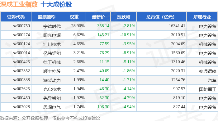深成工业(399682)指数十大成份股详情如下: