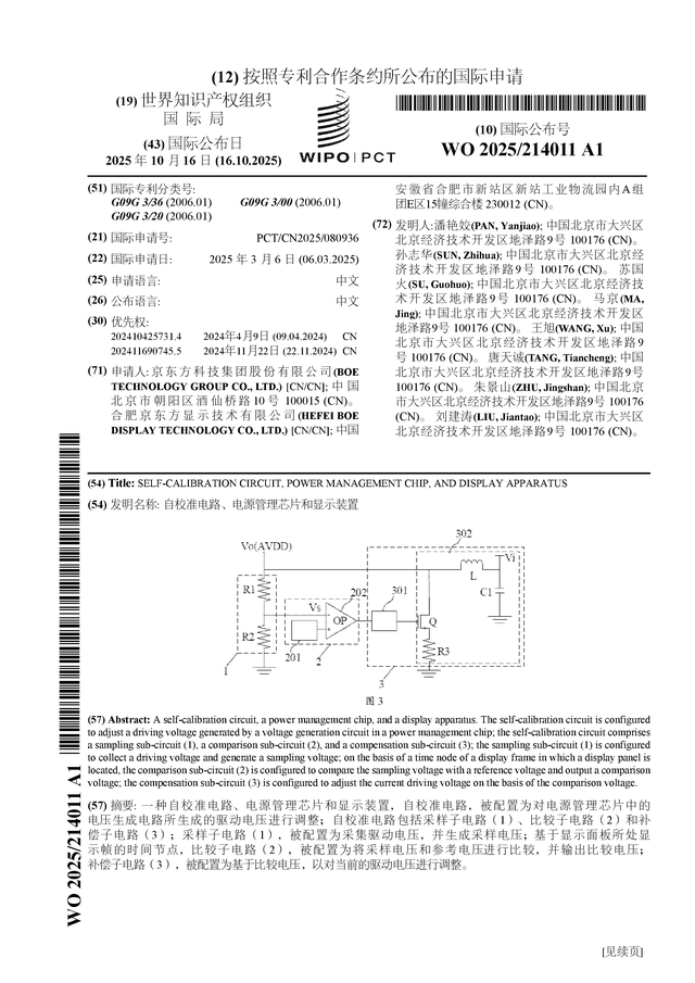 证券之星消息,根据企查查数据显示京东方A(000725)公布了一项国际专利申请,专利名为“自校准电路、电源管理芯片和显示装置”,专利申请号为PCT/CN2025/080936,国际公布日为2025年10月16日。