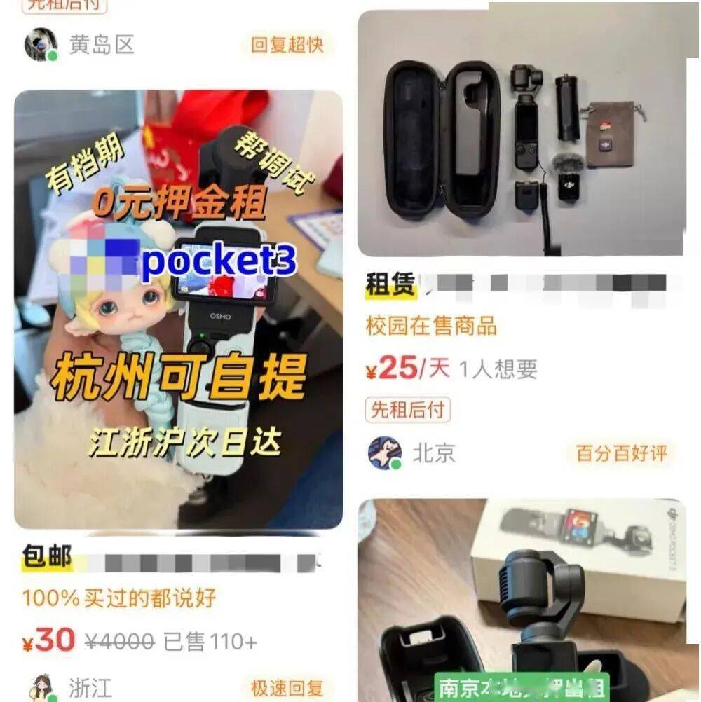 “20块一天,即租即用,立省三千。”爱旅游的白领小鱼告诉我们,她今年已经多次通过闲鱼、爱租机等二手租借平台租借运动相机,包括一度被调侃为“电子茅台”的大疆Osmo Pocket 3和“i人自拍神器”影石360 Go 3S,以及这个品类的祖师爷Go Pro。