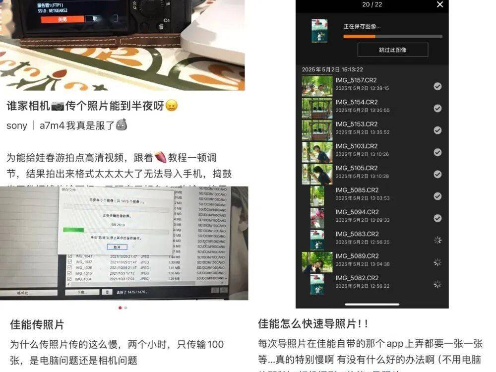 网友吐槽相机传输图片不便。(图/社交媒体截图)