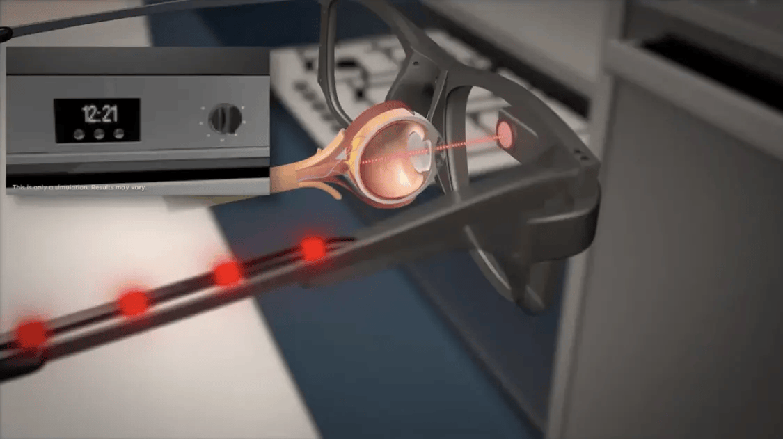 术后,患者佩戴连接腰部小型电脑的增强现实眼镜,眼镜摄像头捕捉视觉场景,并通过红外光束将信息投射到芯片上。AI 算法将相应视觉数据转化为电脉冲,通过视神经传递至大脑,形成一种新的视觉感知。经过练习,患者可以学会扫描文字并调整缩放以阅读,康复训练通常持续数月。值得注意的是,没有患者出现周边视力下降。