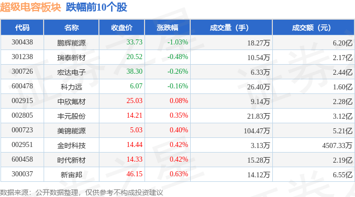 从资金流向上来看,当日超级电容板块主力资金净流出376.25万元,游资资金净流入3537.13万元,散户资金净流出3160.89万元。超级电容板块个股资金流向见下表: