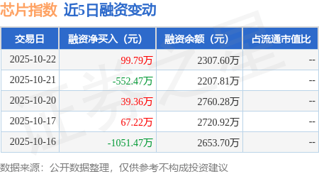 证券之星消息,10月22日,芯片指数(159599)融资买入277.48万元,融资偿还177.7万元,融资净买入99.79万元,融资余额2307.6万元,近20个交易日中有13个交易日出现融资净买入。