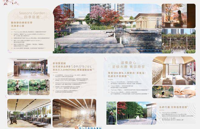 配套设施方面:项目设有面积约47,278平方呎的多层式住客会所「Seasons Retreat」及占地约51,066平方呎四季庭园,提供包括八大主题的水上设施,当中包括约50米室外游泳池,儿童嬉水园等,以及健身室、美术室及四季水疗等设施。