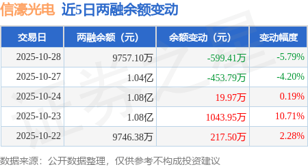 证券之星消息,10月28日,信濠光电(301051)融资买入338.99万元,融资偿还938.4万元,融资净卖出599.41万元,融资余额9757.1万元。