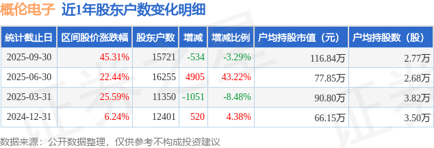 从股价来看,2025年6月30日至2025年9月30日,概伦电子区间涨幅为45.31%,在此期间股东户数减少534.0户,减幅为3.29%。