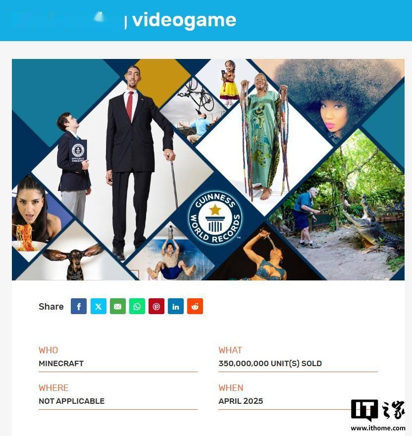 IT之家 11 月 2 日消息,《我的世界》全球销量已正式突破 3.5 亿份,巩固其作为史上销量最高电子游戏的王者地位。这一最新销售数据由 Mojang 工作室在《我的世界 2026 年度报告》中确认,并于 2025 年 4 月由吉尼斯世界纪录官方认证。此次里程碑式的成就,标志着自 2023 年 10 月该游戏首次突破 3 亿销量以来,又实现了 5000 万份的惊人增长,迄今为止尚无其他任何游戏作品达成此成就。