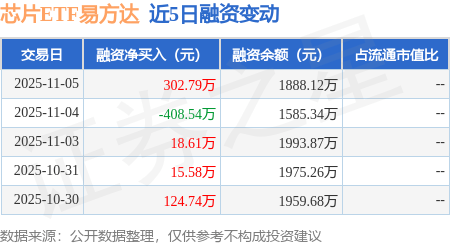 证券之星消息,11月5日,芯片ETF易方达(516350)融资买入474.79万元,融资偿还172.0万元,融资净买入302.79万元,融资余额1888.12万元,近20个交易日中有13个交易日出现融资净买入。