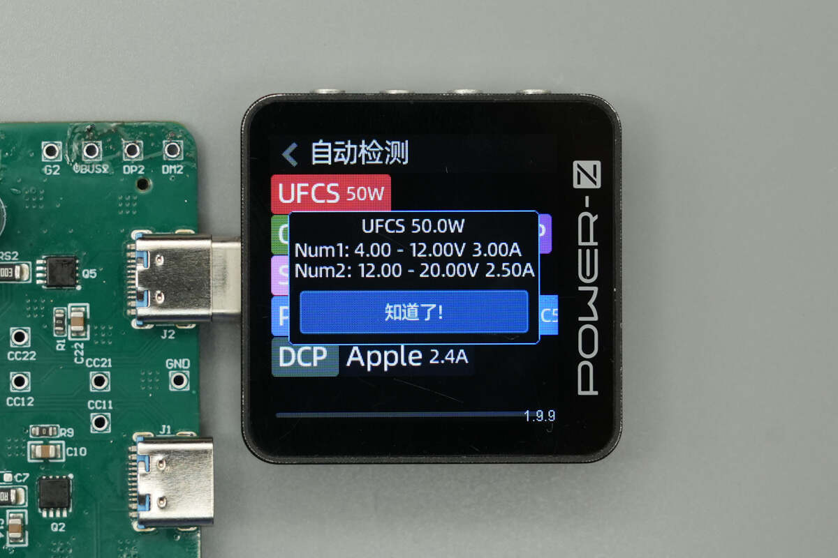 UFCS快充具备 4-12V3A和12-20V2.5A两组电压档位。