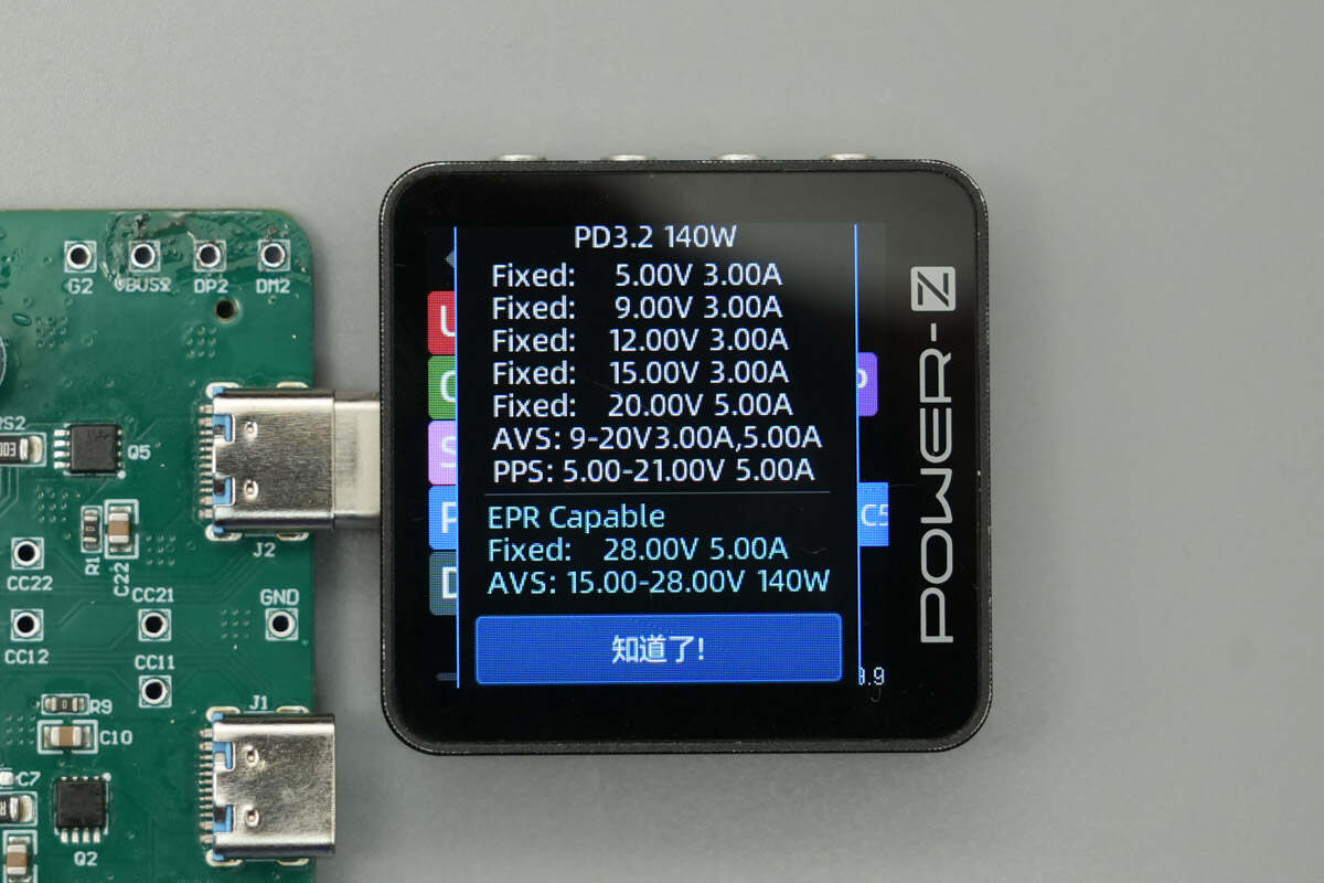 该方案支持PD3.2 AVS,PDO报文方面, 具备 5V/3A、9V/3A、12V/3A、15V/3A、20V/5A五组固定电压档位,支持 PD3.2 SPR AVS 9-20V 3A,5A、PD3.1 EPR AVS 15-28V/5A 140W两组AVS快充档位以及支持5-21V/5A 一组PPS电压档位,补充电压档位28V5A。