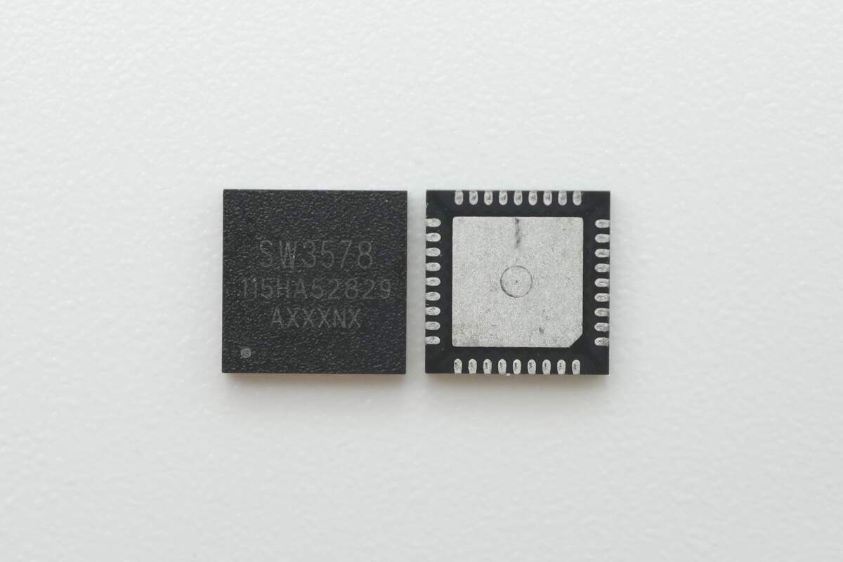 同时为方便整机控制与平台化复用,SW3578 内置 32bit MCU,提供 I²C/UART 等数据通信接口,支持固件加密与 OTA 在线升级,支持18路可复用 GPIO,以及 12bit ADC,待机电流典型仅60 µA,可实现更细致的状态监测、按需点亮与低功耗待机。SW3578 采用 QFN36 封装,适用于多口快充适配器、智能车充、智能插排等充电设备。