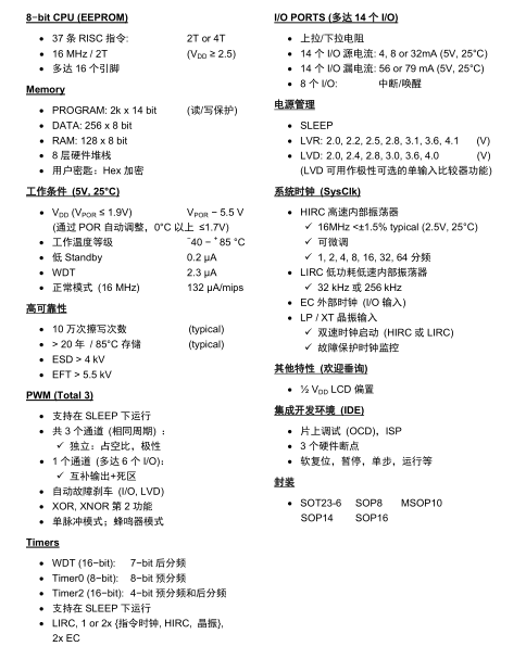 Program: 2k x 14; RAM: 128 x 8; Data: 256x 8