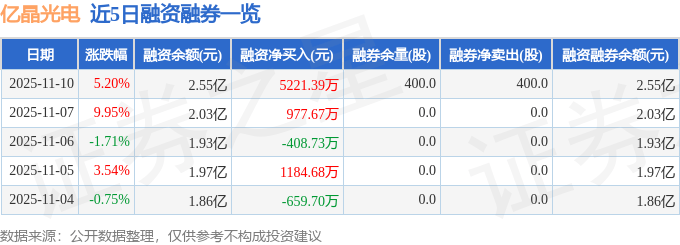 亿晶光电融资融券信息显示,融资方面,当日融资买入1.71亿元,融资偿还1.19亿元,融资净买入5221.39万元。融券方面,融券卖出400.0股,融券偿还0.0股,融券余量400.0股,融券余额0.19万元。融资融券余额2.55亿元。