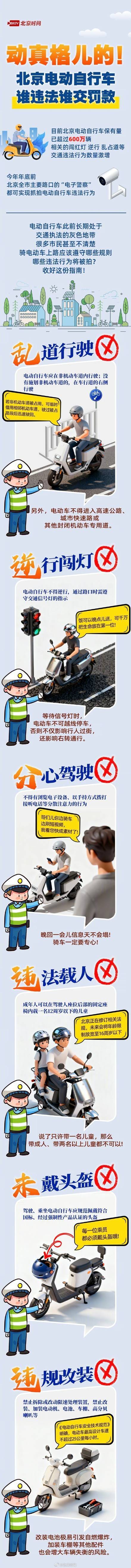 北京电动车车主看过来!随着电动自行车的增多,闯红灯、逆行等交通违法激增。6 类违法被 “电子警察” 盯得死死的,年底前严查没商量!快收下这份电动车指南,合规骑行不踩坑!(文案|李志一;设计|杜婵娟;统筹|王鹤霖)