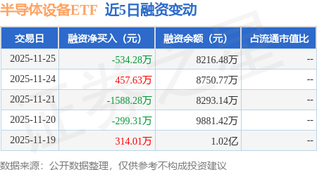 证券之星消息,11月25日,半导体设备ETF(561980)融资买入683.74万元,融资偿还1218.02万元,融资净卖出534.28万元,融资余额8216.48万元。