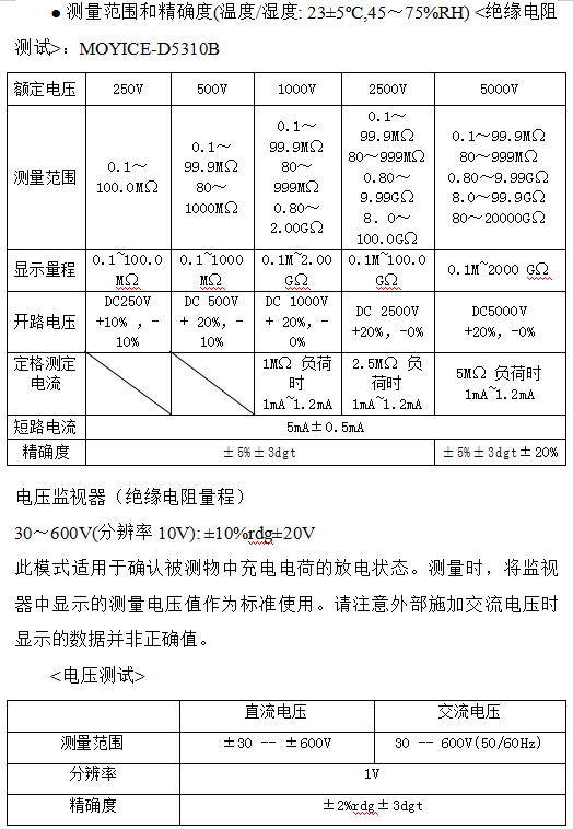 ◆MOYICE-D5310B高压绝缘电阻测试仪技术参数