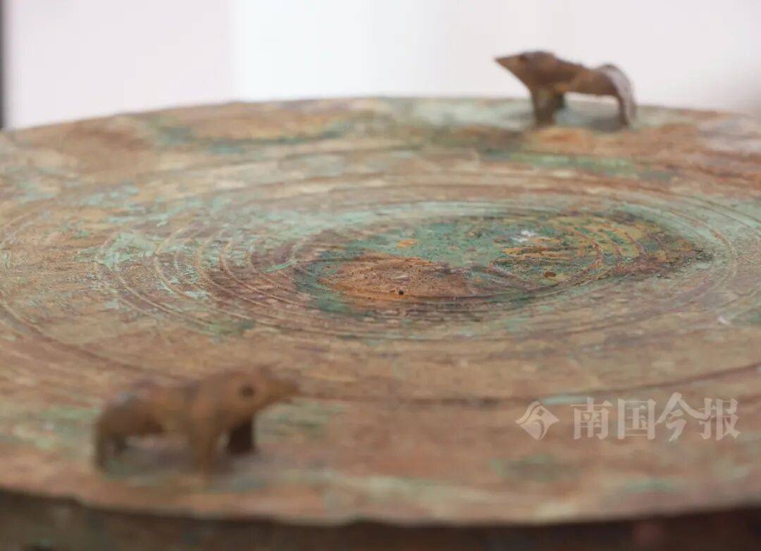 “这面古代铜鼓在柳城出土,说明近2000年前的柳城已有着极为繁华的文化交流。”廖桂引介绍说,这也是柳城首次出土古代铜鼓。
