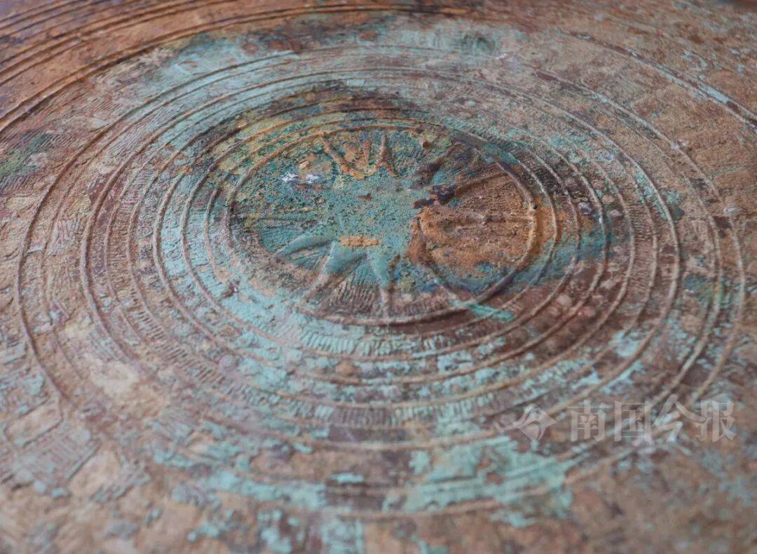 铜鼓中心的太阳纹。通讯员 汤晓逵 摄